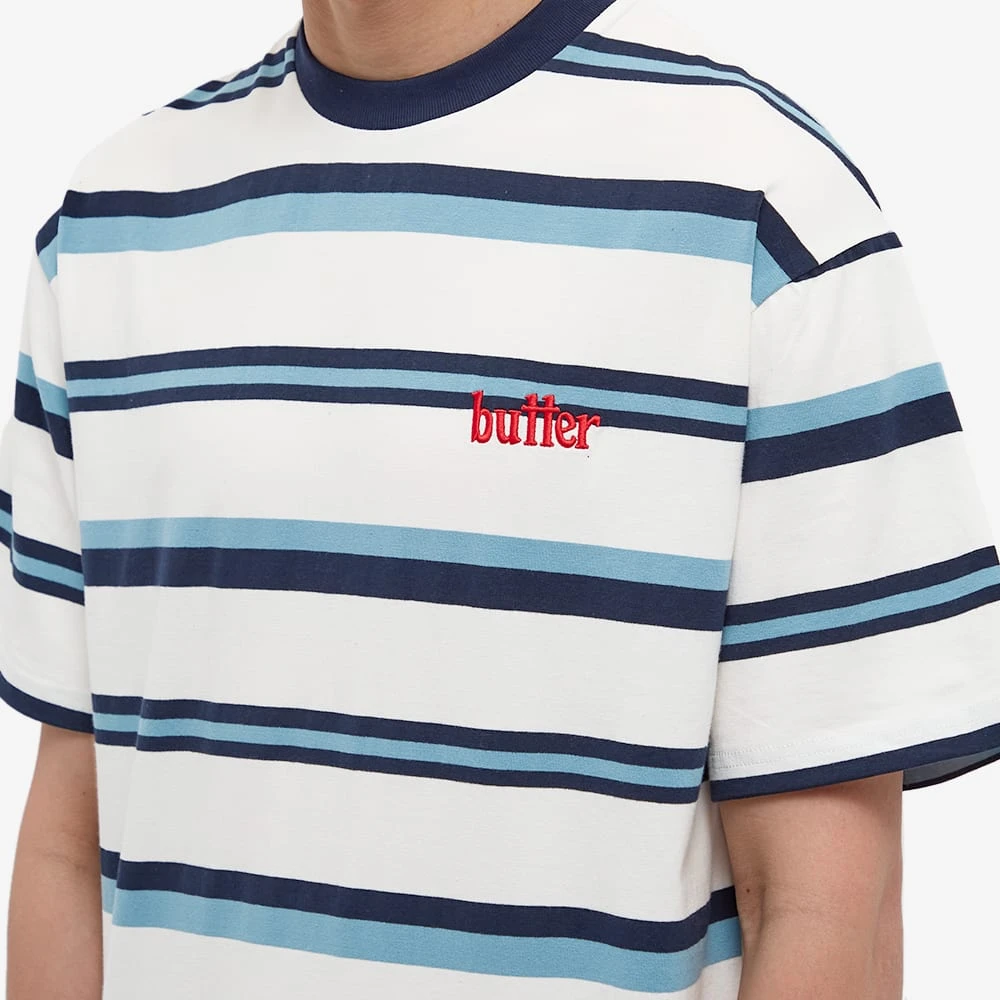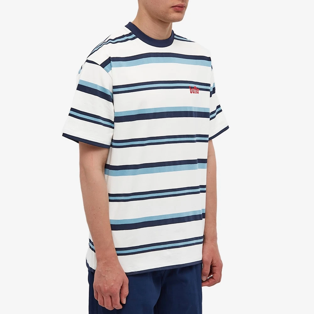 Australian brand Butter Goods has your casual looks covered with this Base tee. Horizontally striped in white, navy and blue, it’s crafted from pure cotton jersey and cut to a relaxed, skate-ready fit. It’s then signed off with red embroidered branding at the chest for that effortlessly cool feel.
