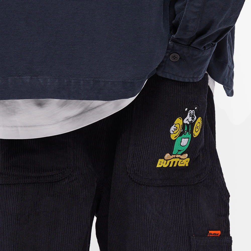 Australian skate label Butter Goods looks to classic workwear to inspire the cut of these navy corduroy shorts. Crafted from heavyweight cotton cord, they’re cut just above the knees with a classic carpenter pocket to one side. To finish, the brand’s overall-wearing bear mascot can be seen loudly clashing his cymbals on the back pocket and again at the front coin pocket.