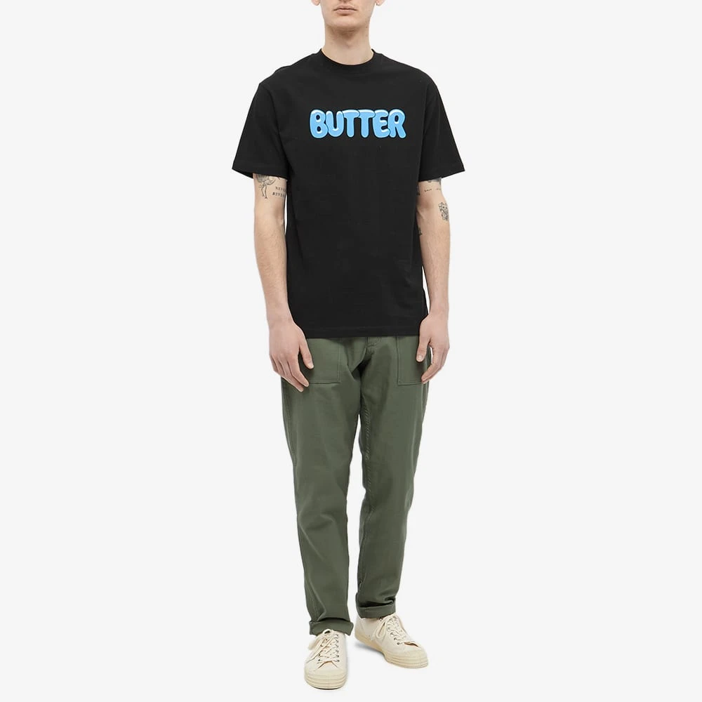 Build up your collection of skate staples with this black tee from Aussie label Butter Goods. Crafted from premium cotton jersey, its cut to relaxed fit and detailed with a contrasting blue logo at the chest.