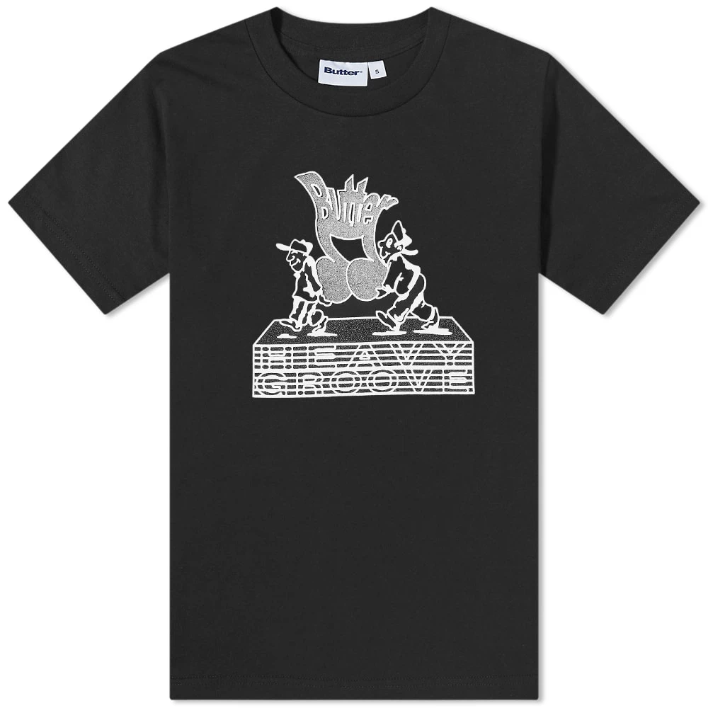 A standout style from Butter Goods SS22 line-up of graphic tees, this black one is perfect for pairing with baggy trousers. It’s crafted from premium cotton jersey and features a heavy groove print at the chest depicting two workers carrying a musical quaver note.