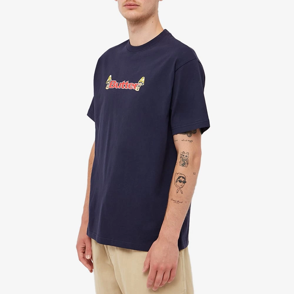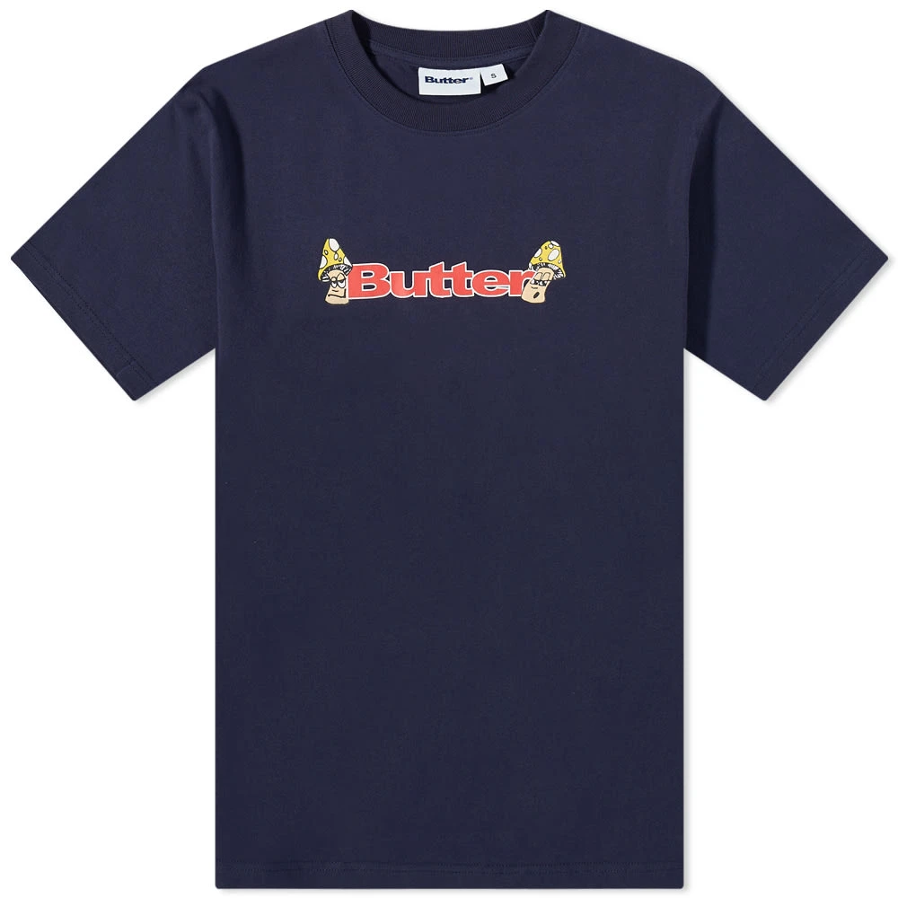 Butter Goods is renowned for its fun prints- and it shines through this navy tee. Crafted from pure cotton, it’s cut to a classic fit and is detailed at the chest with vibrant red branding and two mushroom graphics on either side for a whimsical touch.