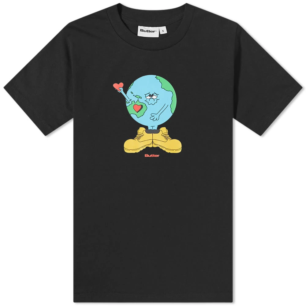 Butter Goods is renowned for its fun graphics- and it’s showcased through this black tee. Crafted from soft cotton, it’s detailed with the world working its heart out at the chest for a playful touch.