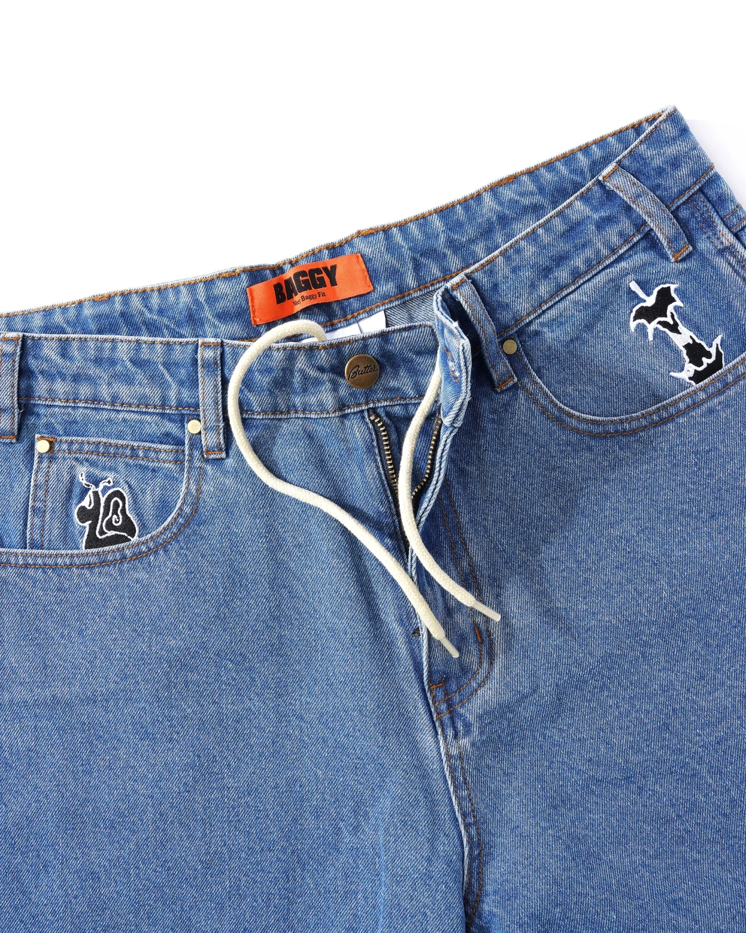 Critter Denim Jeans, Washed Indigo, Size 32″