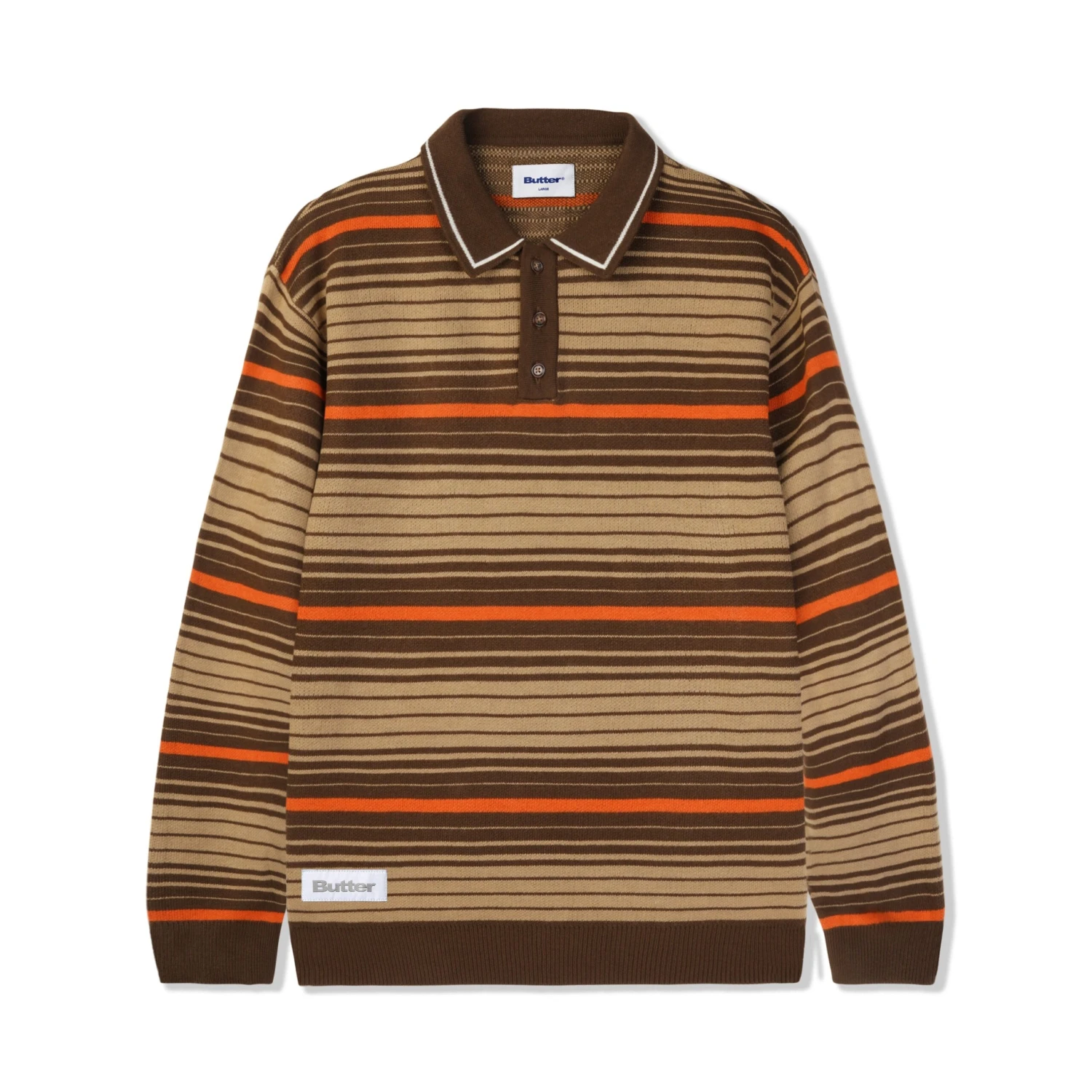 Stripe Knitted Shirt, Oat / Brown / Orange, Size Large